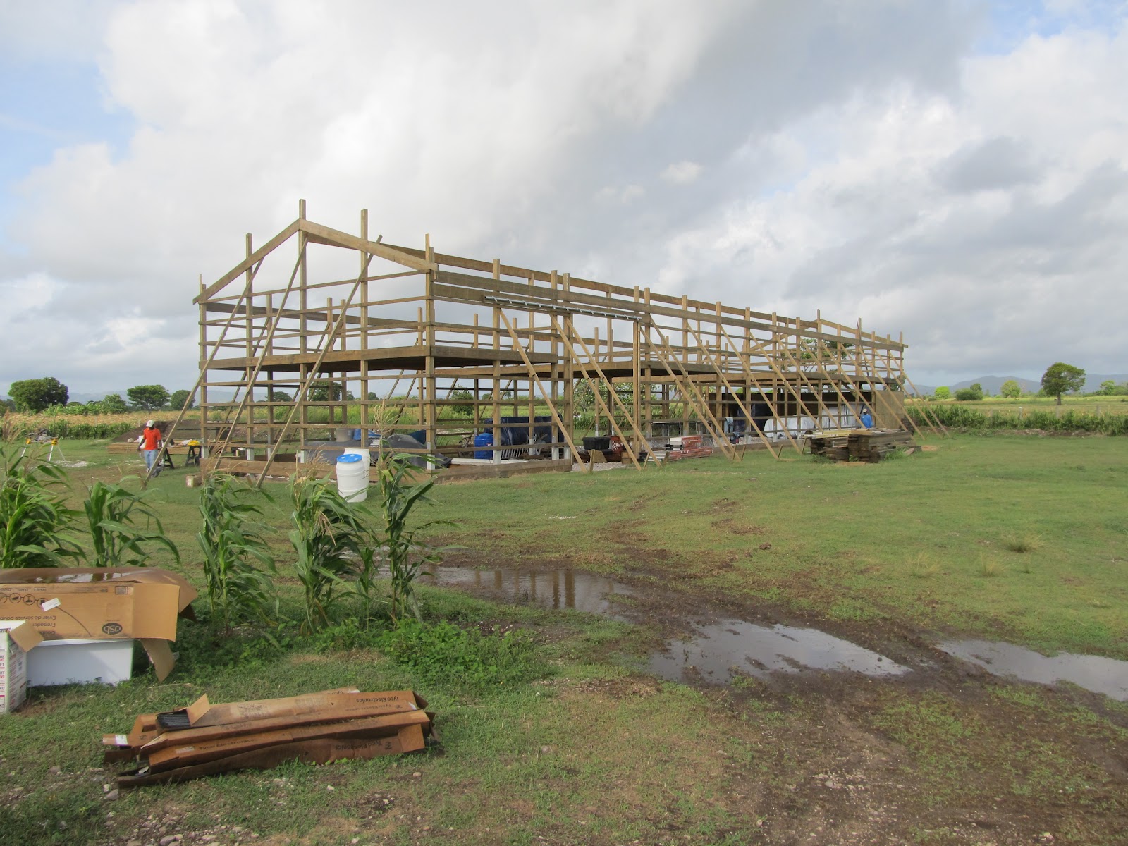 The push barn that is PULLING people together is taking shape. We worked all day on the barn, a few of the Haitians were working along side us.